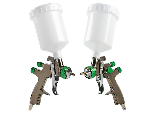 Достоинства LVLP (Low Volume Low Pressure) - низкий объём, низкое давление. Низкое потребление воздуха. Высокий перенос материалов на окрашиваемую поверхность. Низкая чувствительность к перепадам давления.
