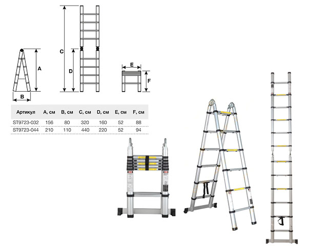 Лестница телескопическая двухсекционная алюминевая 160/320см 12,5 кг STARTUL