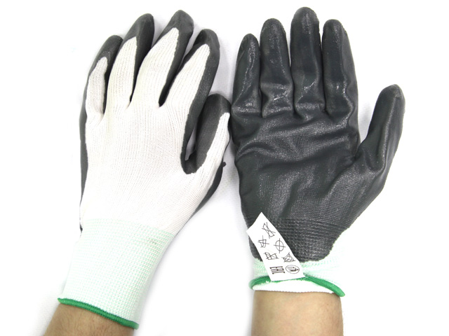 Покрытие: ладони: нитрил. Бесшовная, трикотажный манжет с окантовкой, основа - синтетический трикотаж.